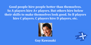One big issue I see is that people hire their pals. The minute Mr X hits Company A, he starts bringing in his pals. I’ve written this before but it bears saying again: “You didn’t hit it out of the park before, why would you bring the team with you?” The Yankees don’t hire a whole team; they hire A players to fill in a roster of A Players.
